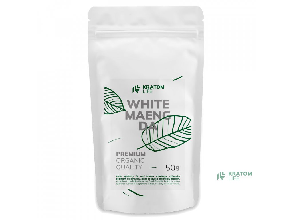 Kratom White Maeng Da je považován za špičku mezi kratomovými druhy a představuje TOP produkt, ke kterému se ostatní kmeny přirovnávají. Tento kmen, pocházející z jihovýchodní Asie, je oblíbený mezi sběrateli díky své vysoké popularitě a výjimečné prodejnosti. White Maeng Da vyniká svou bohatou koncentrací alkaloidů, což jsou přírodní látky s různorodými účinky. Listy tohoto kratomu mají sytě zelenou barvu a často jsou protkány typickými zelenými žilkami. Jeho vůně je svěží, bylinná a velmi výrazná, což přispívá k jeho oblibě mezi znalci.